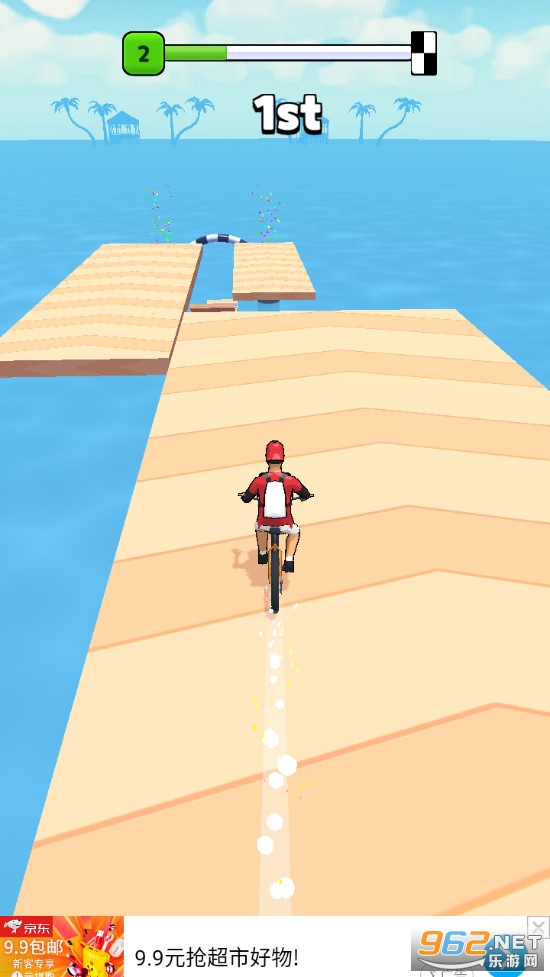 在水上平台冒险,骑着自行车敏捷的移动,飞跃一个个缝隙,在多个平台上跳跃前行,注意不要掉下去了,否则游戏就结束了,有着多种关卡场景可以挑战,喜欢的朋友可以下载试试。
