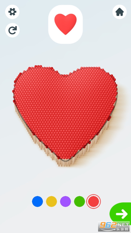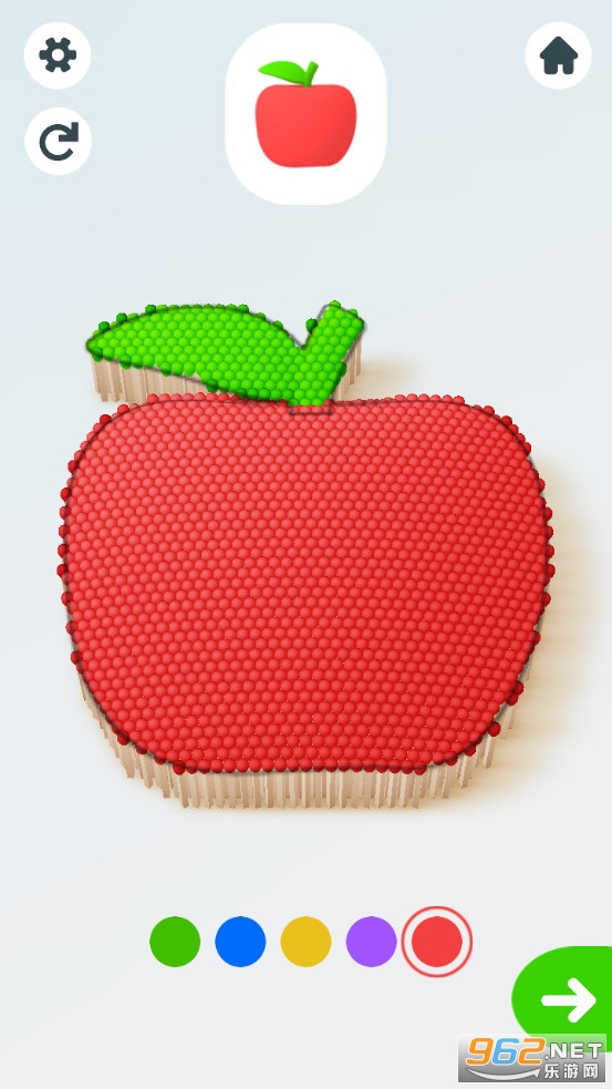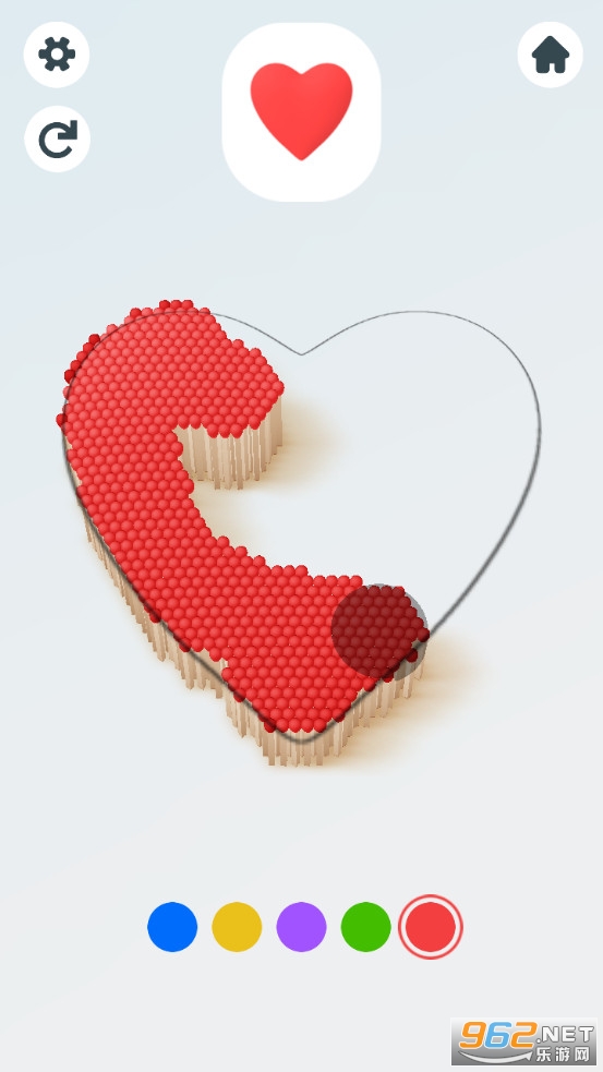 游戏玩法简单,根据目标图形的提示选着合适的颜色去摆放火柴即可,有着苹果等各种不同的模型可以挑战,摆放好之后可以点燃看着火柴燃烧,给你不一样的体验,喜欢的朋友可以下载试试。