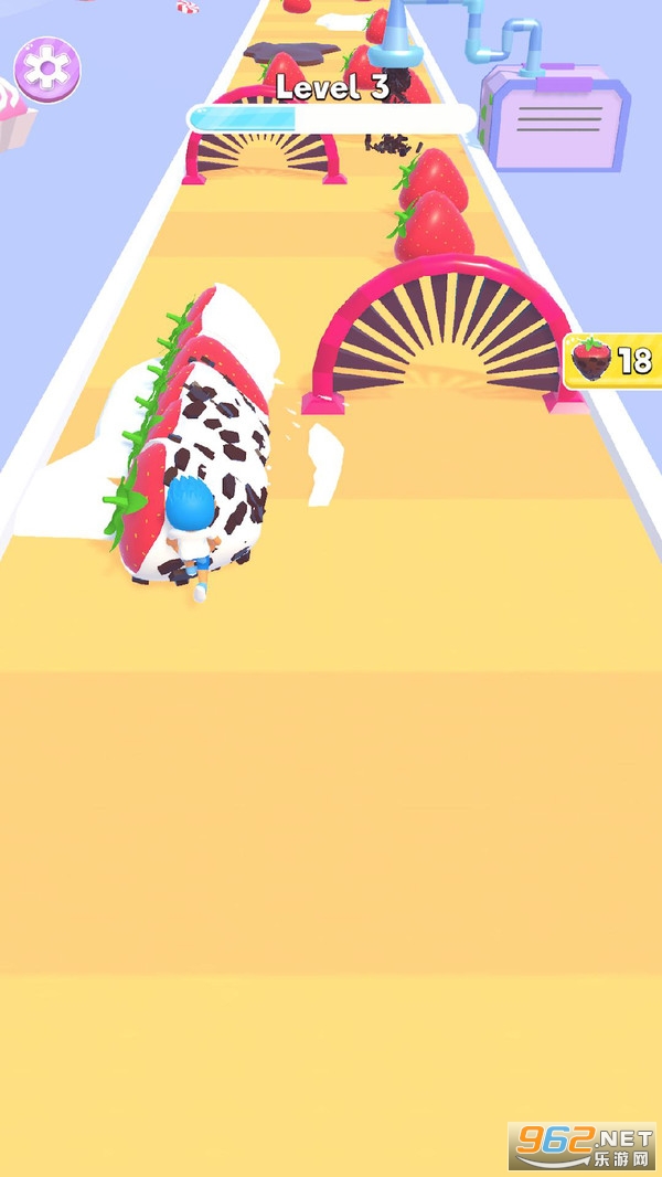 在闯关途中你会遇到各种机关和障碍物,灵活的避开这些东西,尽量收集到所有的小蛋糕,并且巧克力和奶牛这些制作蛋糕的必需品也不要错过,不然最后就算你抵达了终点,材料收集不齐全一样是不能制作美味大蛋糕的。