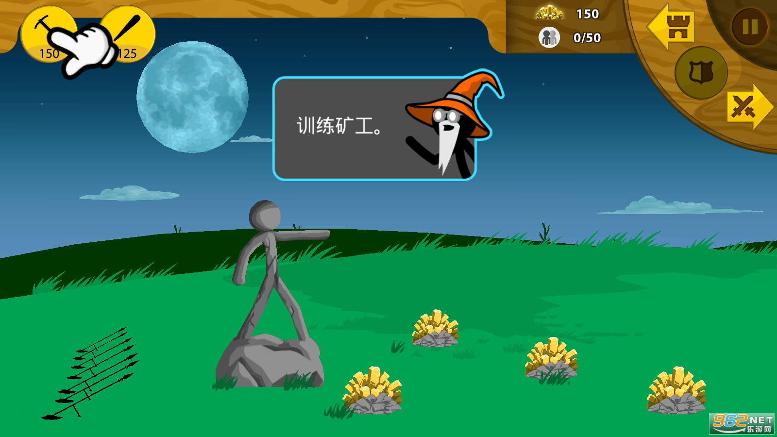 1、游戏中你将亲临激烈刺激的战场,指挥你的火柴人勇士进行作战,而且游戏中有着各种火柴人士兵可供训练;