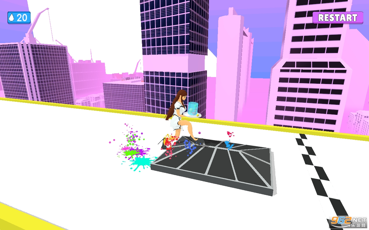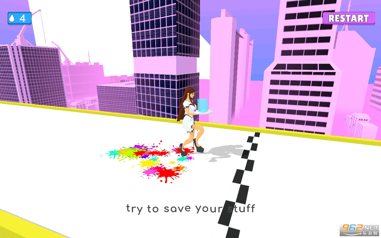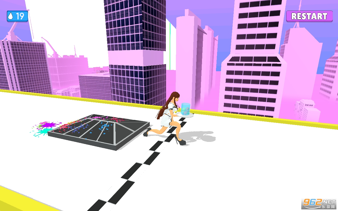 玩家需要控制好酒保小姐姐,保证她手中的酒水不会撒到地上,通过点击屏幕的方式,我们的主人公会慢慢的向前走,同时在一些障碍物的面前