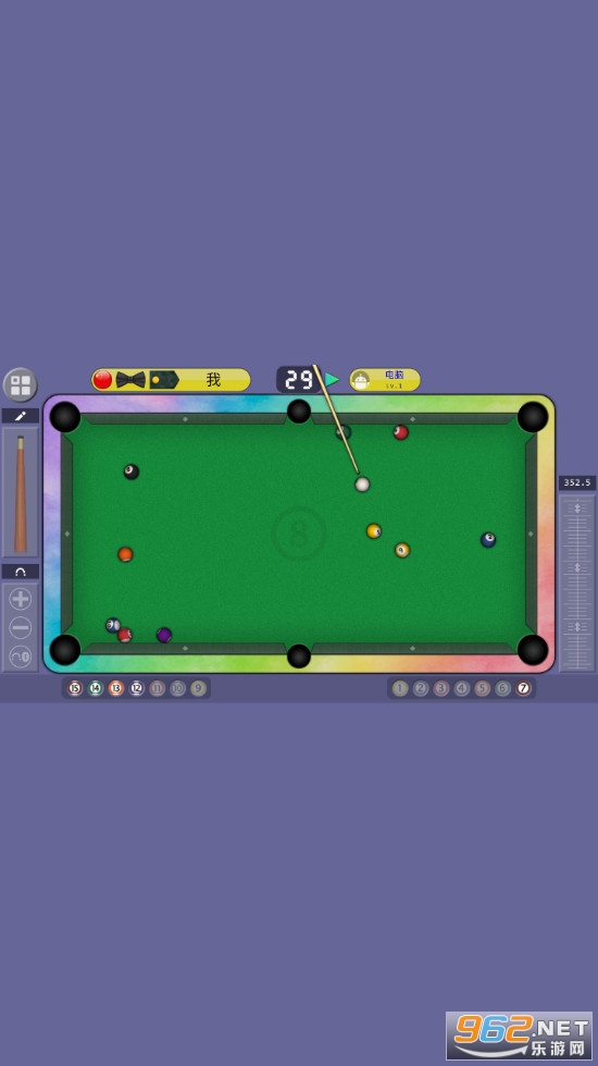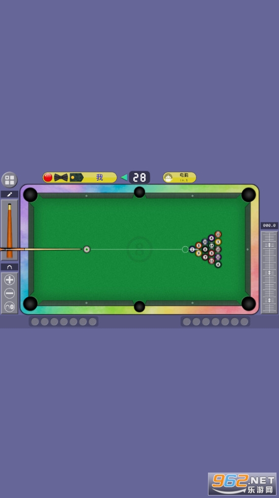 《台球888游戏》是一款画面清新的模拟台球竞技手游,游戏中玩家可以选择与电脑对战,也可以与在线的小伙伴一起竞技,游戏的操作比较简单,点击滑动球杆可以控制球杆变换方位,点击右边的进度条可以微调球杆,点击左边的进度条可以控制球杆击打的力度。