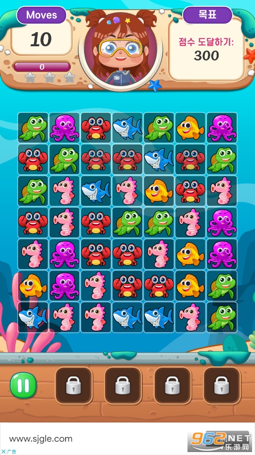 《海洋三消》(Ocean Match3 Puzzle)是一款清新卡通风格的休闲益智闯关游戏,游戏的操作简单容易上手,还有着多样的挑战等待着你,你将进行一场场有趣的海洋生物消除挑战,在规定的移动次数内完成指定的分数,赶快下载体验吧!