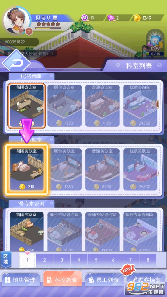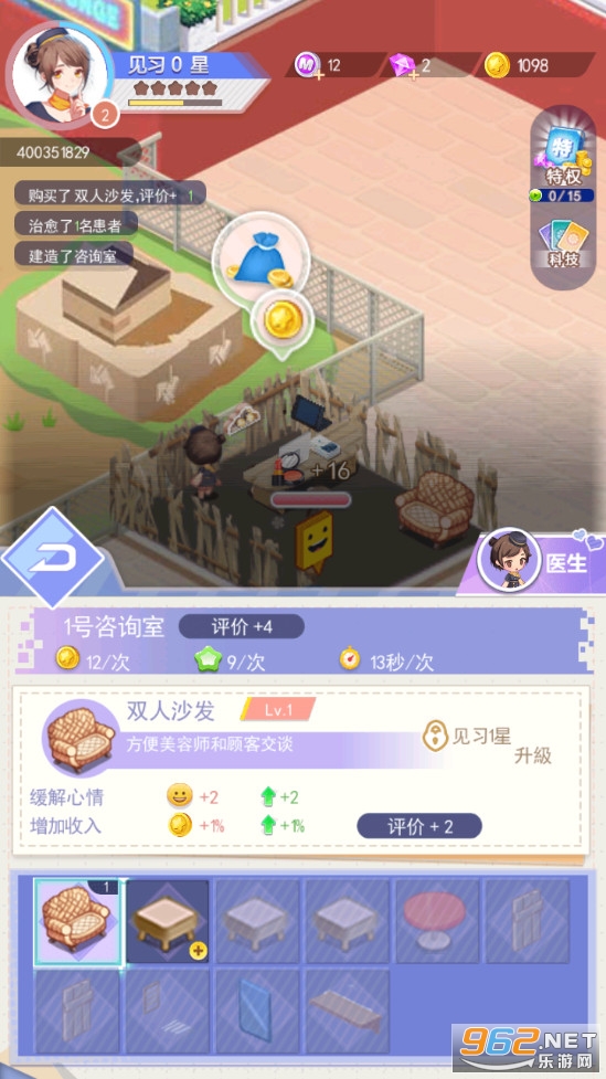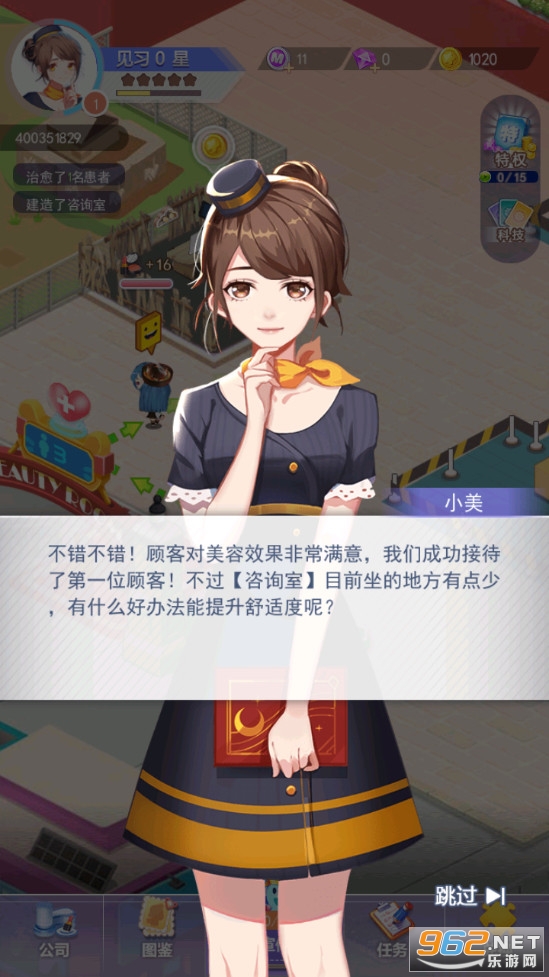 开设美容院为顾客提供服务,比如有顾客吃火锅长痘痘了可以让她前往咨询室进行询问,然后进行治疗,让顾客重新变得美美哒,赚取金钱,扩建自己的美容院,喜欢的朋友可以下载试试。