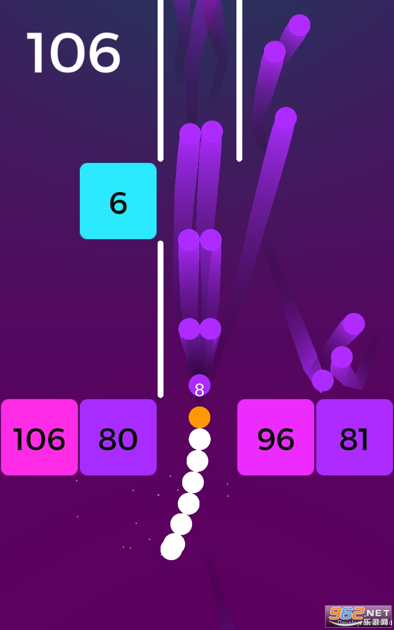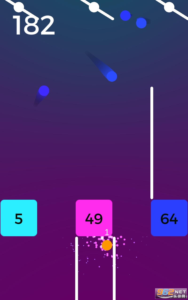 1、百万冲击中玩家可以通过打砖块的方式去射击打中更多的球球,以增加你的闯关分数。