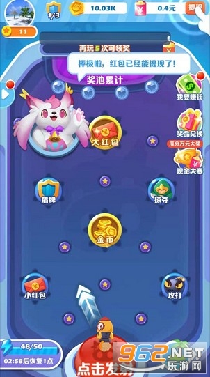 玩法风格和阿伟弹力球很像,大家在千变万化的场景中进行弹球消除,尽量不要让弹球掉落下来,因为这样我们就不能累计到更多的积分,最后的红包金额也会很少,如果你的手速跟不上的话也可以借助一下道具的帮助,使用道具完成消除。