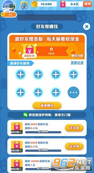 1、一款通过玩游戏、分享、邀请、看视频就可以赚取红包奖励的益智小游戏。