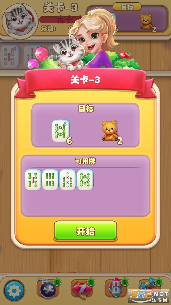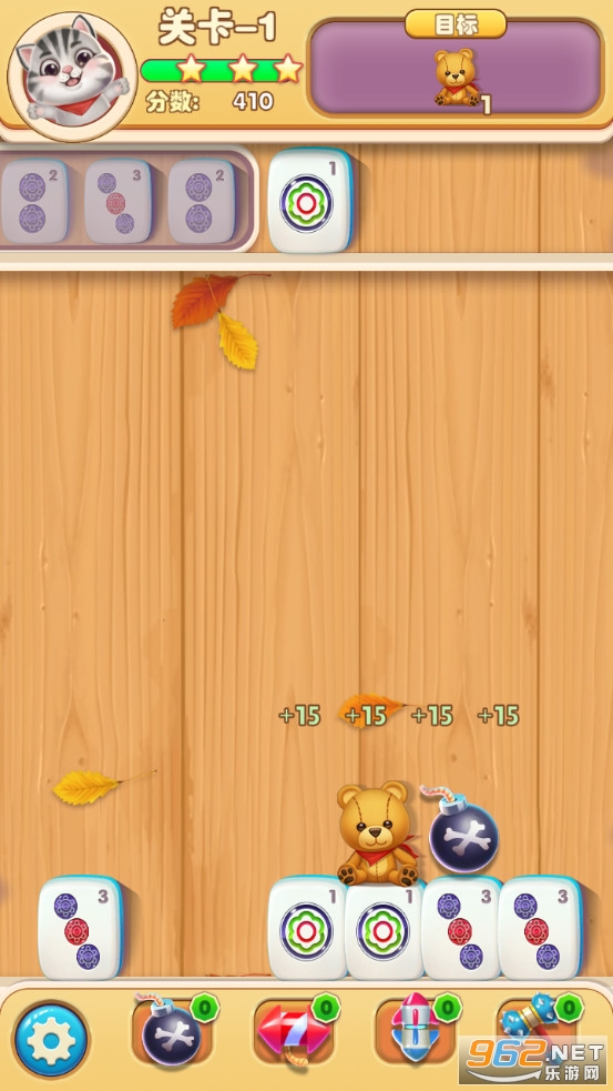 3.收集完目标中所有的麻将或者特殊物品(气球,苹果,气泡,炸弹宝箱,玩具熊等),您就赢了!