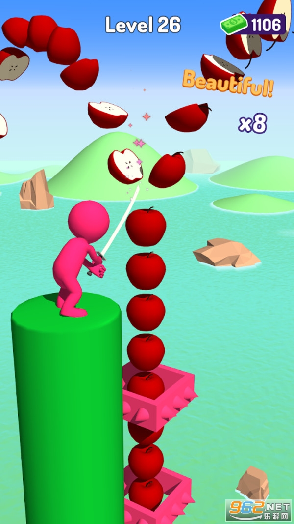 趣味切割闯关游戏,控制好刀完成所有的切割挑战,在切水果遇到坚硬物体的时候尽量避开,不然会对我们的刀造成伤害,让你的刀变钝,导致后面切水果就不那么顺畅了。