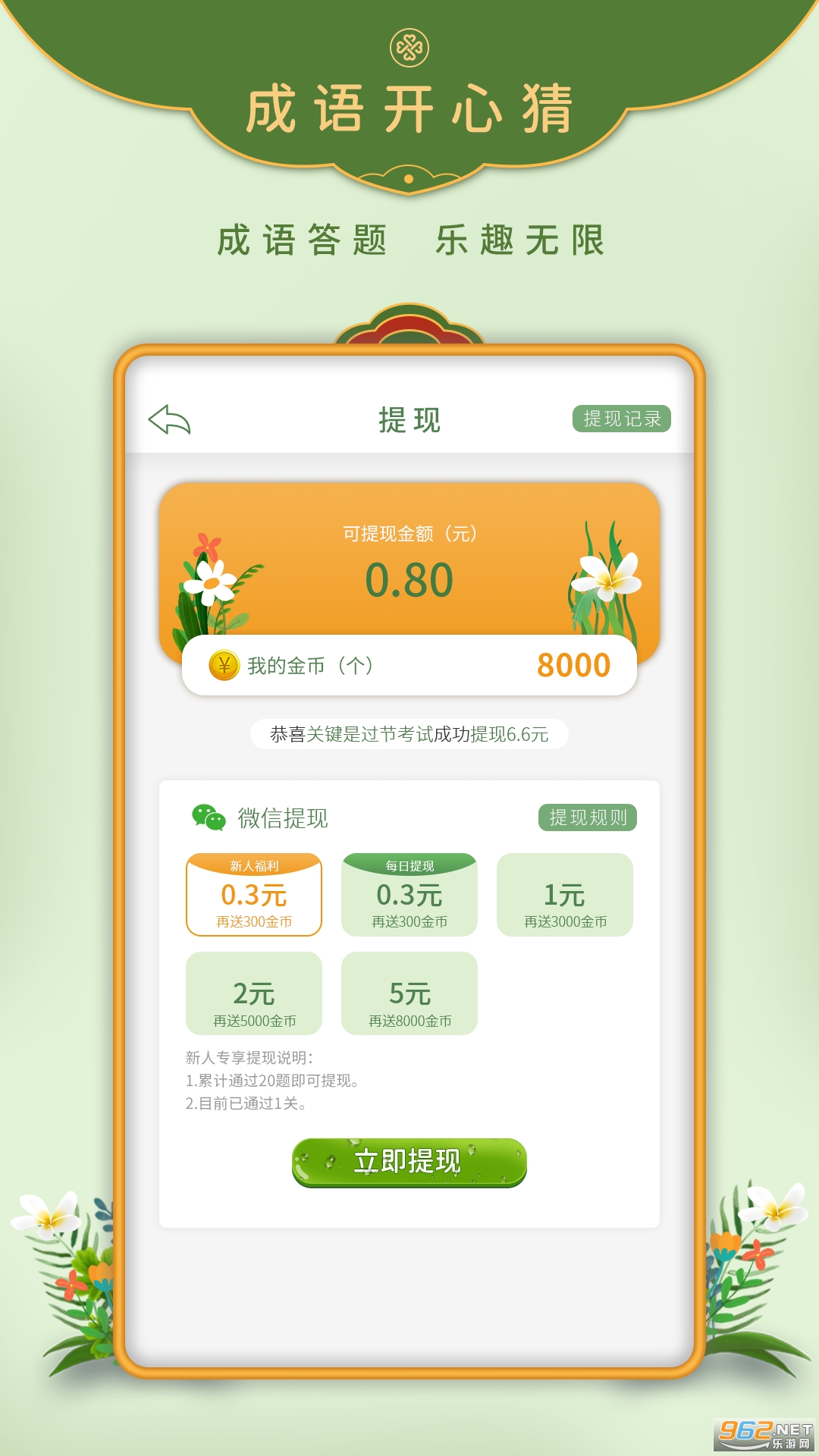 小伙伴可以在这里学到超多宝贵的成语知识,还能在这个过程中拿到许多红包奖励,按照上面的要求去完成关卡挑战,有时候不知道答案也不要紧,因为有提示机会,使用提示信息,可以帮助你轻松闯关。