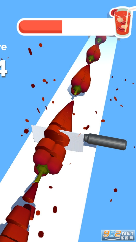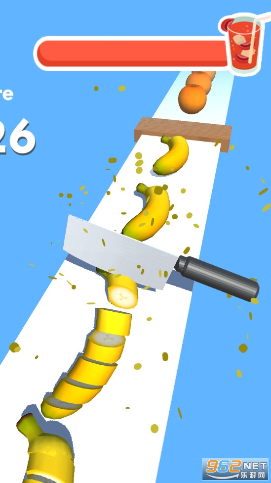 游戏玩法比较简单,就是点击屏幕让刀下落去切水果,点击的速度越快,到切割的也就越快,有着香蕉等丰富的水果可以体验,看着这些水果被切碎,果汁四溢,喜欢的朋友可以下载试试。