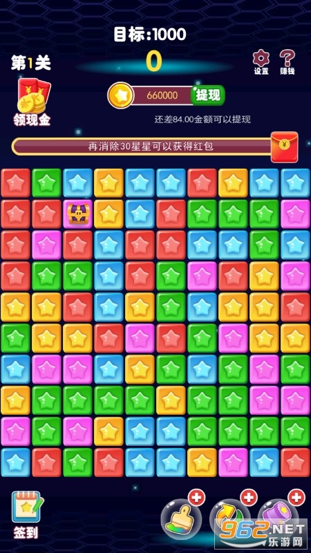 《萌星消消赚》是一款收益相当可观的休闲消除游戏,游戏的画面整洁干净,有海量的消除关卡等你挑战,不断消除闯关领取超多红包奖励,签到做任务也能获得红包,大家在点点消除的时候也可以借助各种强力道具,使用道具能更高效的消除,你还能看到非常酷炫的特效。
