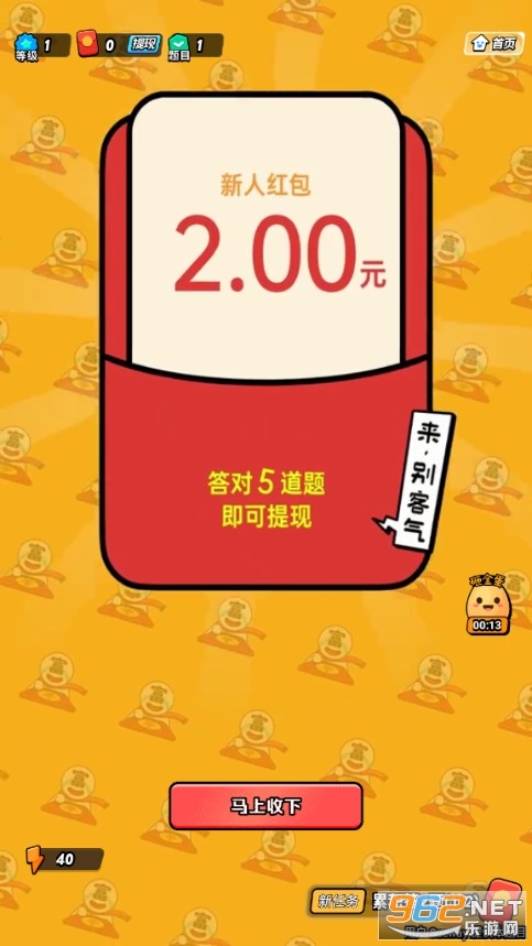 1、通过知识问答,现金挑战成功获得大量金币,现金红包可以兑换提取!