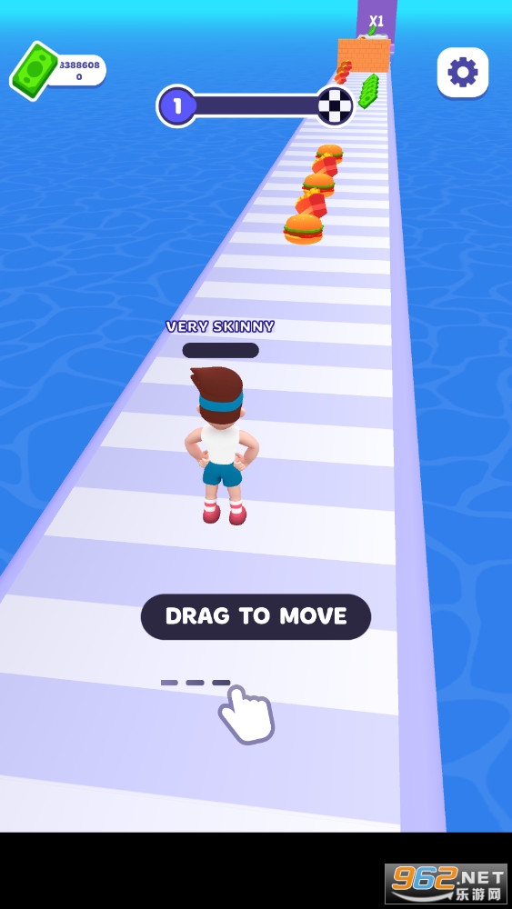 快跑快吃,尽可能地变大!避免跑步机,吃汉堡,鸡肉,薯条,通过障碍。