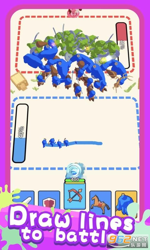 1、玩家需要通过以绘画的方式来部署游戏之中的军队,与敌人展开战斗。