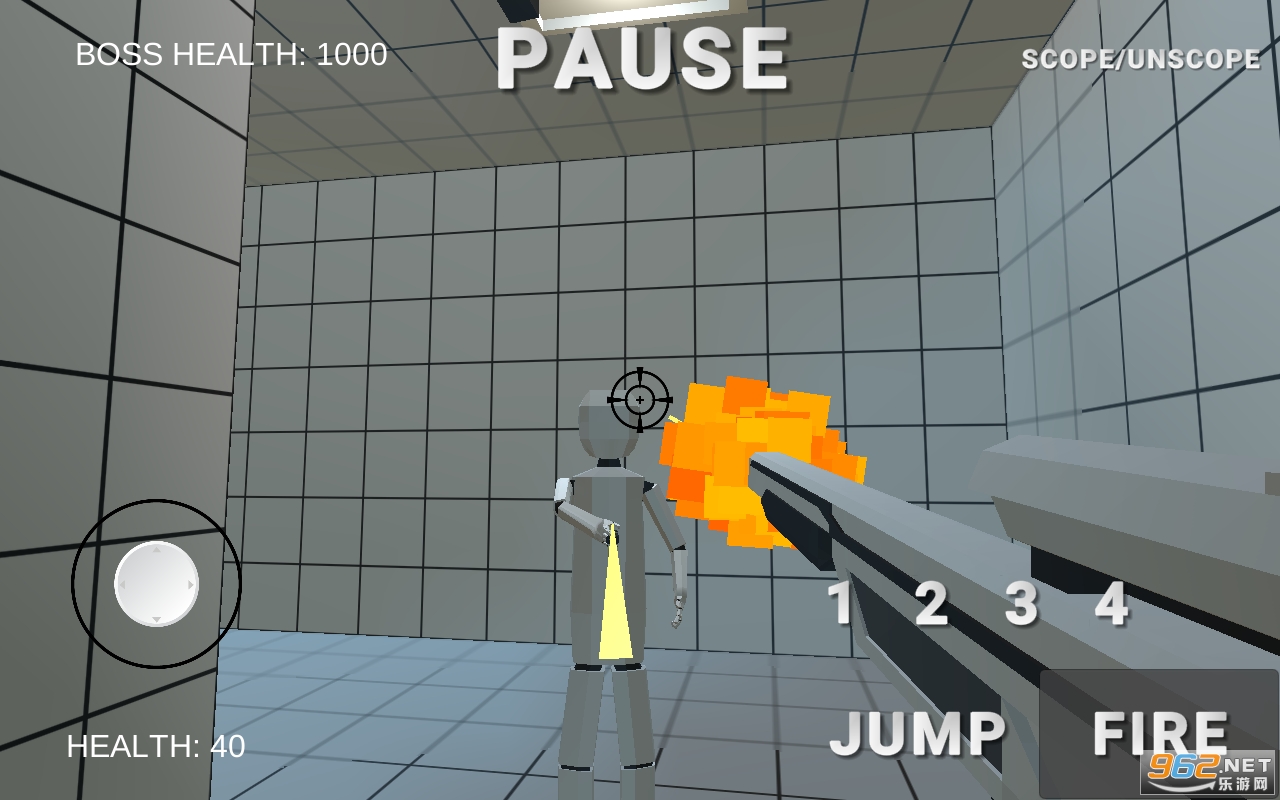 飞行或瞄准您并攻击的机器人。您的目标是尽力避免最后受伤。有一个人形敌人,一架无人驾驶飞机和一个机械臂老板。有突击步枪,手枪,左轮手枪和狙击手。