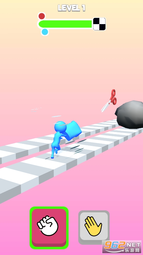 《石头剪刀布对抗游戏》(Rock Paper Scissors 3D)是一款挺好玩的欢乐跑酷竞技闯关游戏,采用了精美的画风设计,玩家在游戏里面需要利用儿时我们经常玩的石头剪刀布游戏的玩法,根据沿途的障碍,灵活的选择出石头,剪刀还是布来闯关,比较考验反应,感兴趣就来挑战吧!