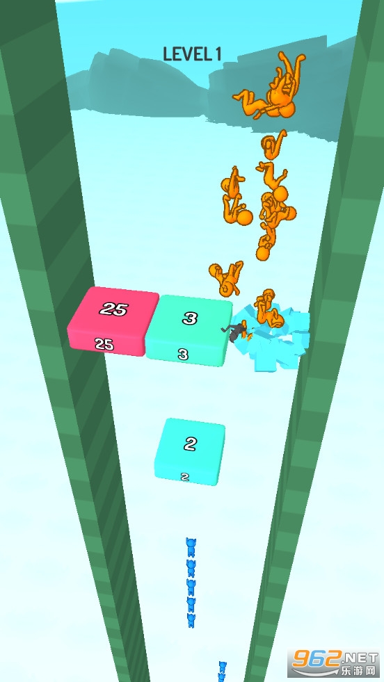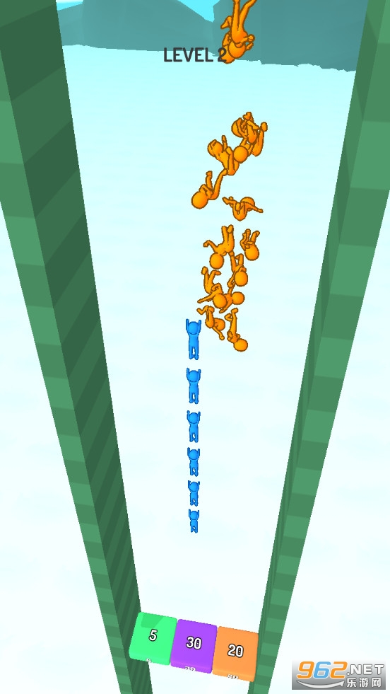 游戏玩法简单,左右滑动屏幕可以控制人群下落的方向,收集途中的人增加人群的数量,通过各种各样的障碍物,安全的下落的终点,喜欢的朋友可以下载试试。