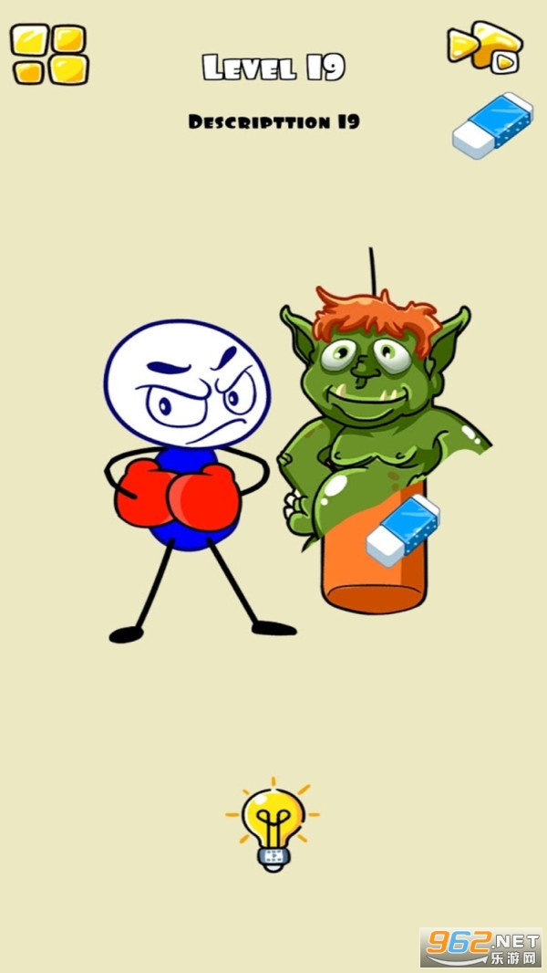 超级好玩,充满趣味的益智闯关休闲类小游戏,玩家可以通过橡皮擦将关卡中的问题进行抹掉,体验趣味十足的闯关过程,按照关卡任务要求来进行抹掉图画的一部分,让你体验轻松魔性的闯关过程,非常好玩有趣!