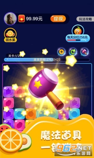 《爱消水果红包版》是一款能赚钱的消除类手游,简单的游戏玩法,轻松的游戏体验,玩家通过简单的游戏模式来赚红包赚福利,提现也方便,福利也不错,喜欢的老哥欢迎来962下载试试吧!