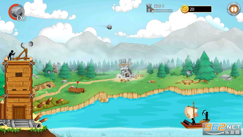 《火柴人海上战争游戏》是一款画面清新的塔防闯关手游,游戏中玩家将控制火柴人去战斗,在高塔上通过投石机去摧毁敌人的船只,点击滑动屏幕可以控制投石机发射的角度和力度,可以解锁石头、炸弹等来攻击敌人,还有着一些陨石等道具可以使用。