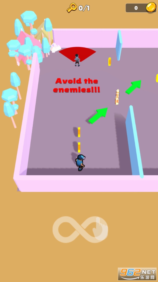 《捉迷藏3D怪物逃生游戏》(Hide and Seek 3D:Monster Escape)是一款画面简约的敏捷躲避类闯关冒险手游,游戏中玩家将控制角色前往一个个房间去冒险,前方会有着敌人,不过敌人的视线范围比较小,避开敌人的视线即可,安全的到达指定的位置,有着多种人物皮肤可以解锁。