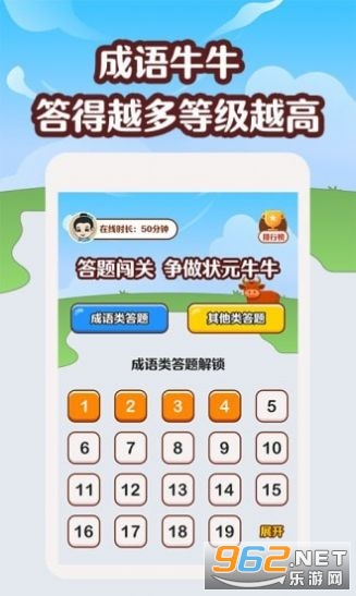 《成语牛牛红包版》是一款能赚钱的成语答题赚钱游戏,海量的游戏关卡等你来挑战,这里没有任何的门槛,也不需要投资,感受一回回答,安装也方便,感兴趣的老哥欢迎来962下载体验一下吧!