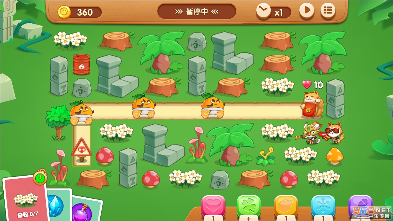 一款策略卡通的塔防手游,简单易懂的操作,丰富的塔防道具,玩家们可以利用功能不同猫咪炮塔,以发射不同的武器和攻击方式,击败对方,感兴趣的玩家赶紧来下载猎果奇兵官方版试试吧。