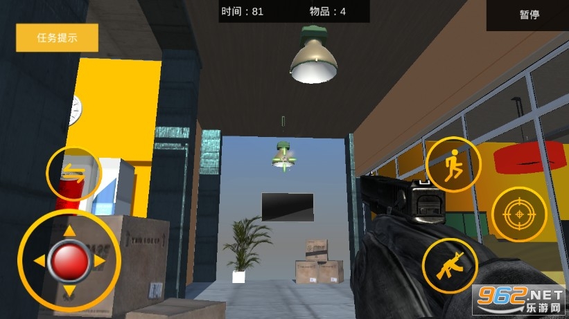 2、用枪来射击房间里的东西,十分有快感,注意时间限制,在规定时间内得更多分;