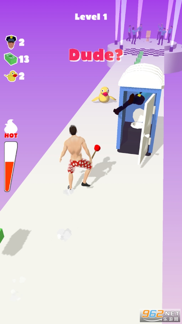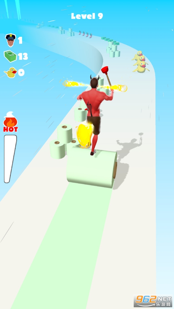 休闲闯关小游戏,拥有简单的游戏画风,操作简单上手容易,收集沿路的卷纸和道具,保持重心的稳定不断前进,保证左右两边的平衡,躲避大量的障碍,成功到达终点马桶前将马桶通开。