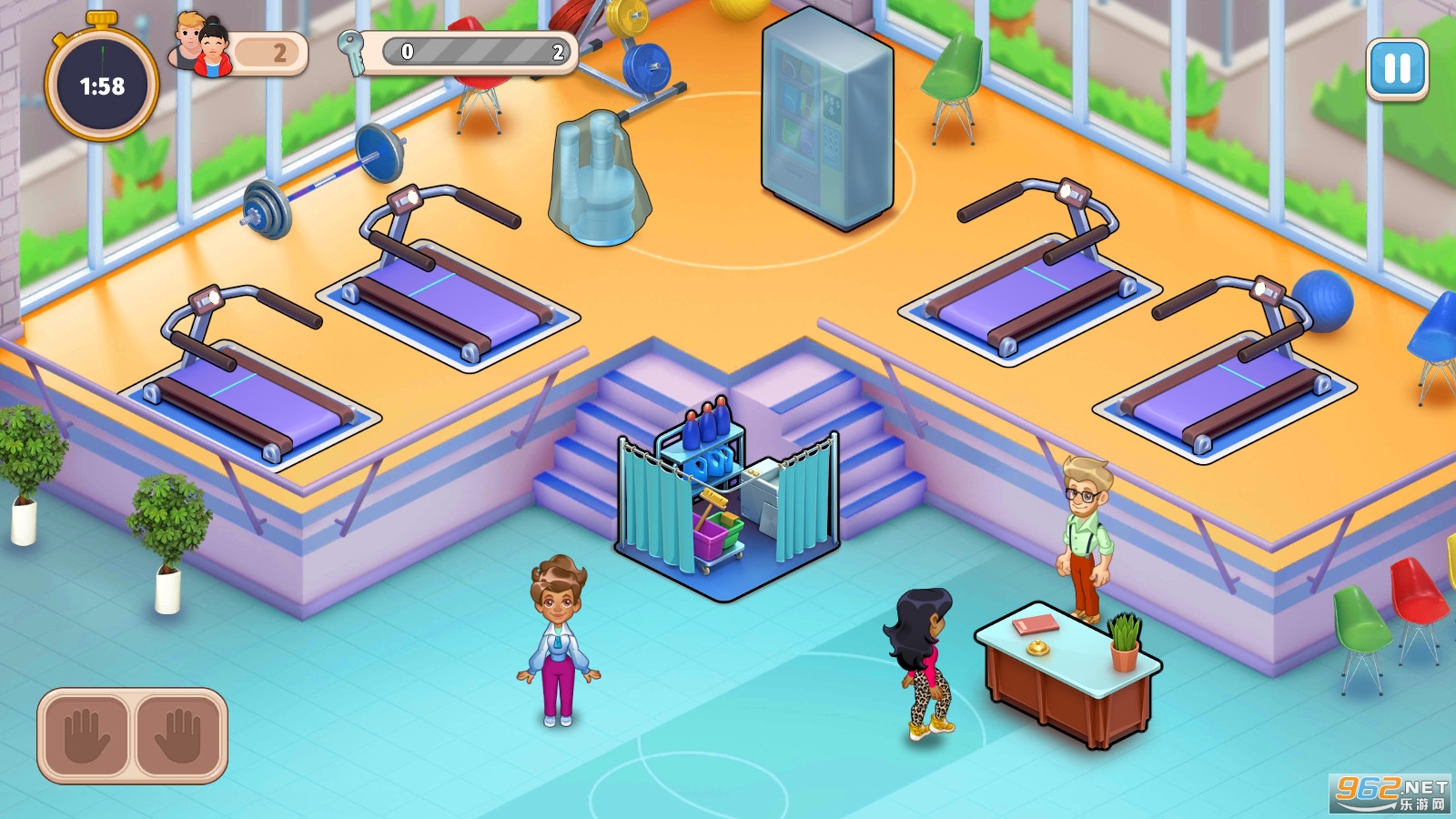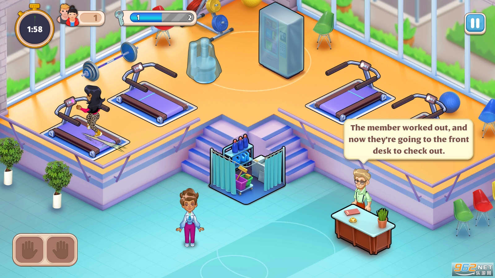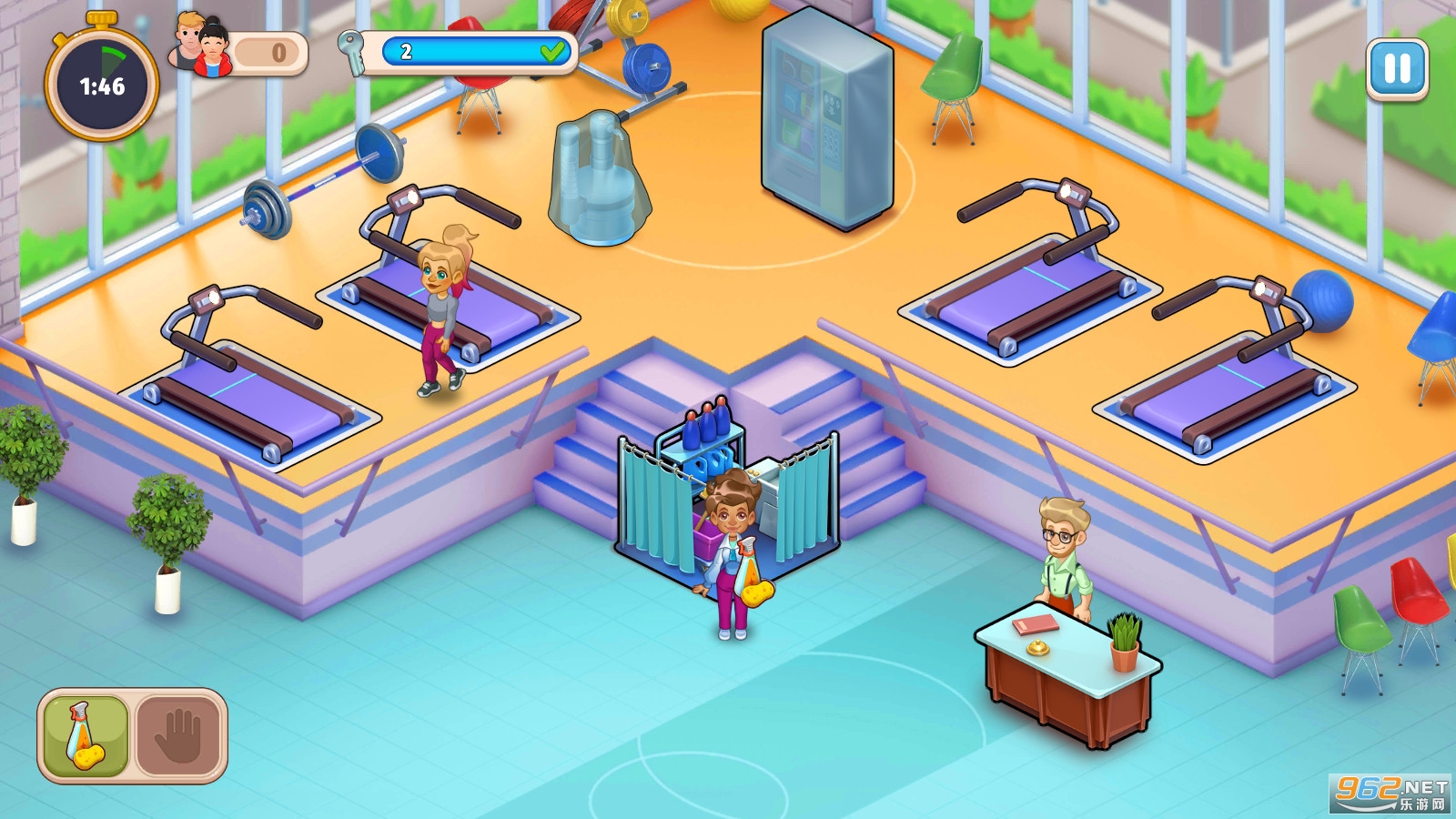 一款非常有趣的健身房经营模拟游戏,游戏的操作简单玩法轻松,你需要一个个的接待客人,进行有效的时间管理,快速的清理干净你的场所,扩建你的场地和设备,还有超多的关卡等你挑战,推荐给喜欢休闲游戏的玩家。