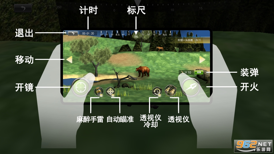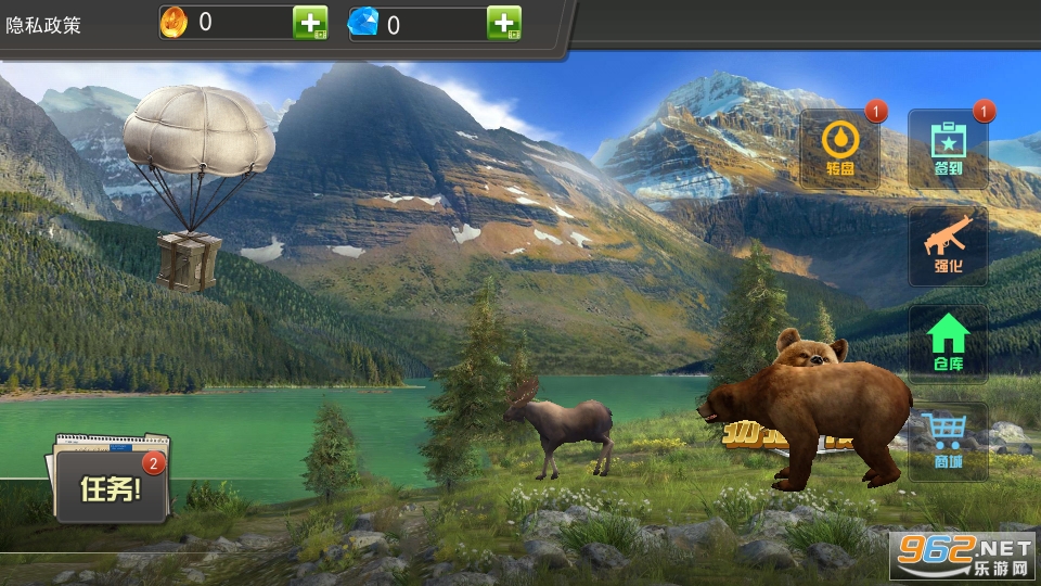 1、高品质3D枪械射击游戏,在野外射击野生动物,各种各样的野生动物任你狩猎;