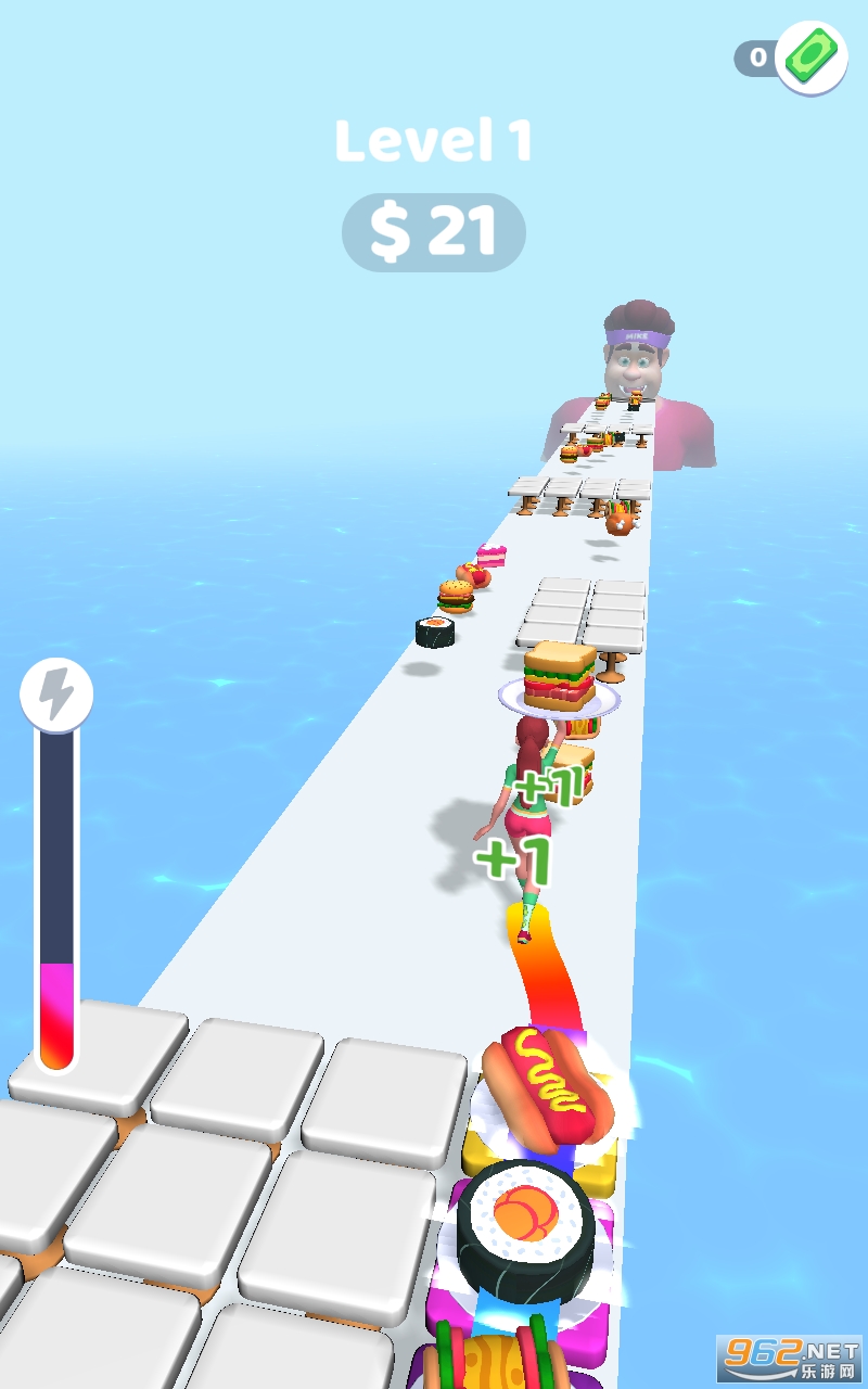 1、极致简单的跑酷挑战,这里的美味食物都不能触碰,只有蔬菜可以选择;