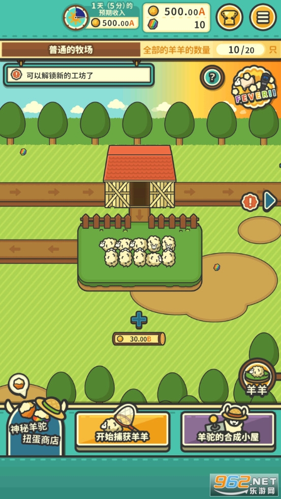 还有更多玩法: 在狂热模式中剪羊毛 混合羊群,合成更高等级的羊羊 开启扭蛋,获取神奇的特殊建筑...