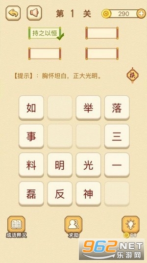 《填词闯关成语红包》是一款福利满满的成语答题赚钱游戏,简单的游戏玩法,轻松的游戏体验,不但可以打发无聊的时间,还能通过答题游戏来赚红包,福利多多,奖励多多,感兴趣的朋友欢迎来962下载吧!