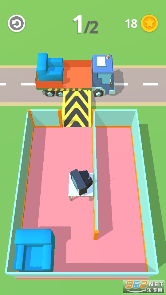 游戏的主要内容就是帮助你的客户进行搬家,把所有的沙发都运送到货车上去,和华容道的玩法有点类似,障碍物会越来越多,合理的进行安排吧,不过游戏里开车的体验挺不错的,可以任性的放飞自我。