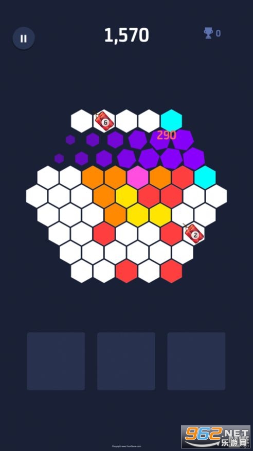 一款三消玩法的休闲小游戏,非常简单的操作,玩家只需要把颜色相同的六边形弄到一起,就可以消除相应的方框,直至所有方框消除,就可以获得高积分通关了。游戏制作非常精美,好听的背景音乐,丰富的关卡,难度逐渐增大,玩家可以挑战更高难度的关卡,好玩不腻。
