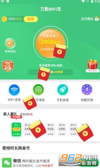 《万能WiFi宝红包版》是一款轻松的能赚钱的wifi软件,操作简单,一键安装到手机,操作简单,可以完成任务来赚红包,还有超棒的福利等你领取,感兴趣的小伙伴来962下载吧!