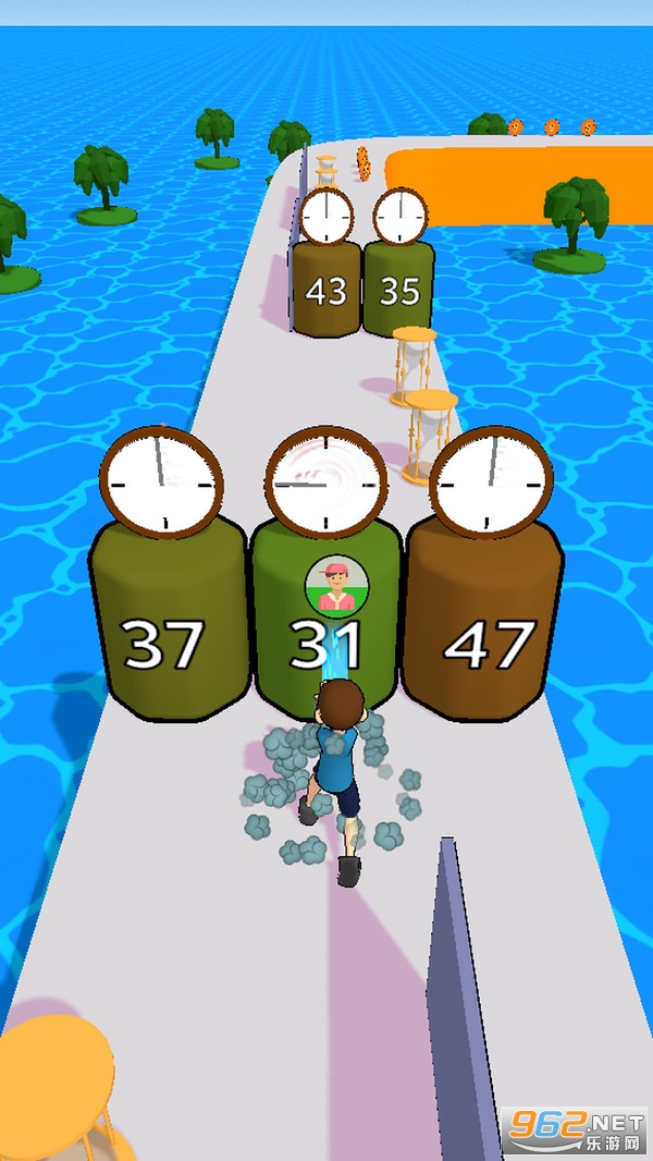 1、跑道上会随机的刷新出来很多时钟,这些时钟能让你快速长大。