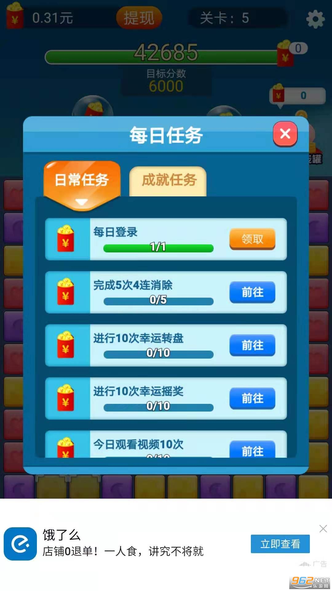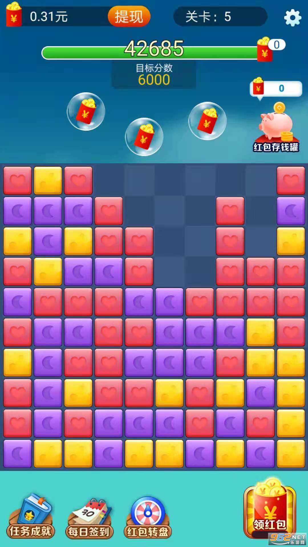简单易学,手感Q弹,画风非常精美,关卡超级丰富,以方块消除的玩法为核心,让人上瘾的消除类休闲游戏!拥有大量的关卡,消除所有的元素完成一个又一个的消除关卡挑战,源源不断的红包让你去领取。