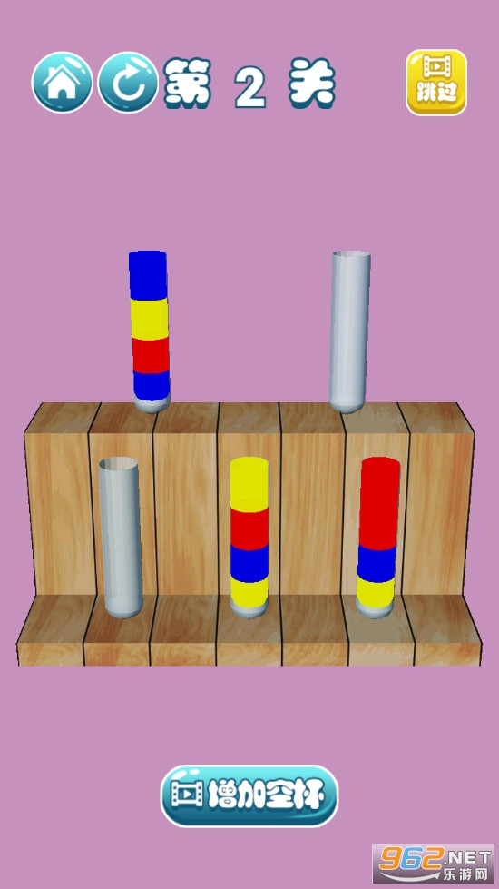 尝试对玻璃杯中的有色水进行分类排列,直到所有颜色都在同一玻璃杯中。
