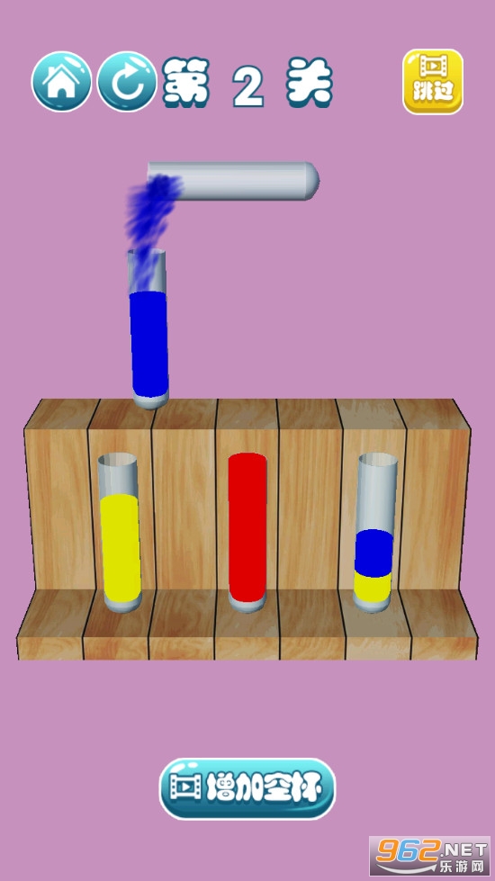 将各种颜色的水分类整理好,操作还是很简单的,自由的倾倒,最后每个试管只剩下一种颜色的水,游戏有着经典模式和计时模式两种玩法可以体验,喜欢的朋友可以下载试试。