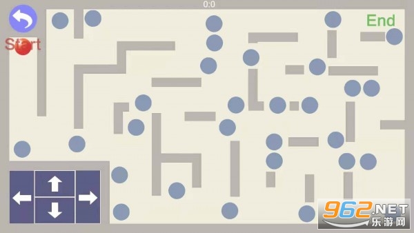 在球球逃出迷宫游戏中,点击右下角的上下左右,就能控制小球的走向,如果小球碰到小洞,就会被吸进去,闯关失败,必须躲避过所有的小球,才能到达终点位置。