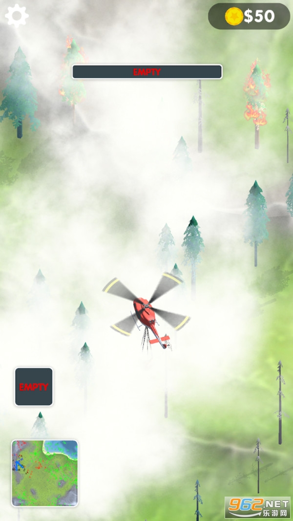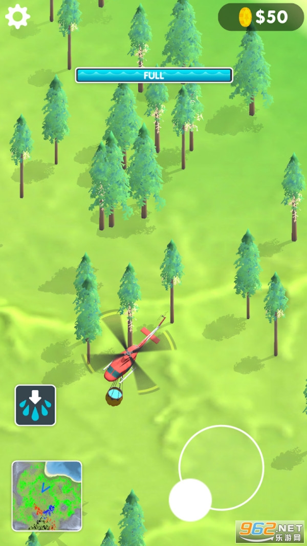 精彩刺激的救火模拟游戏,这片森林的面积是非常大的,要想将火苗扑灭还是需要下一些功夫才行,把所有的直升机开出来,在高空洒水扑灭,您必须装满一大篮子水才能扑灭大火水很快就用完了,因此您必须定期飞往湖泊或大海以补充水的供应。