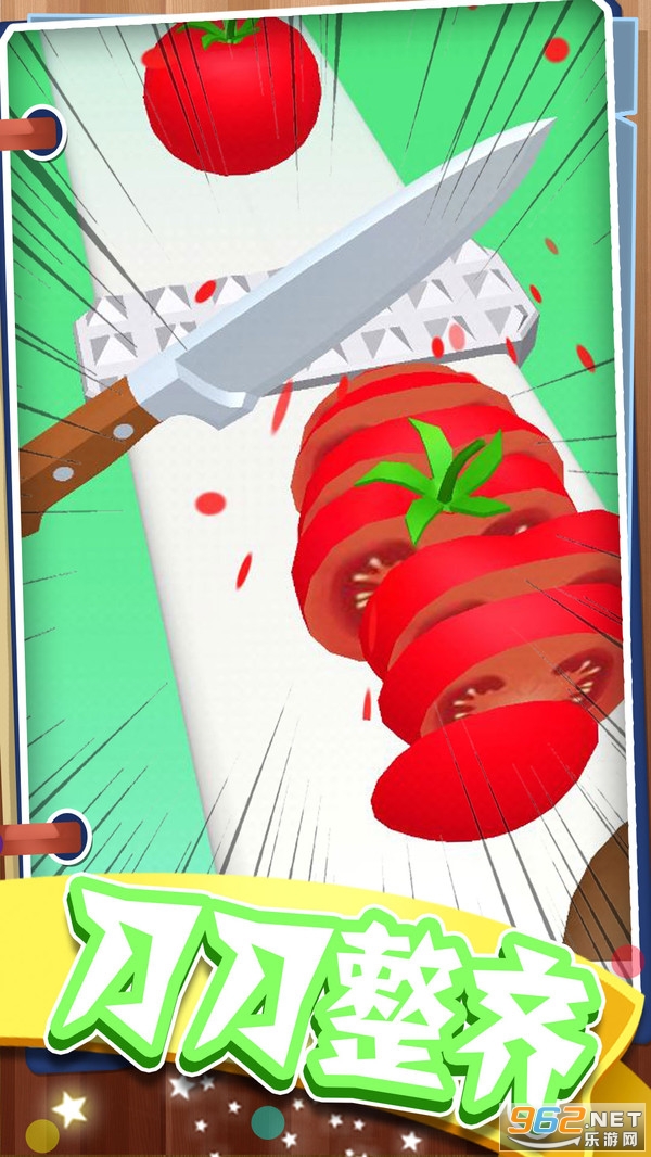 最强菜刀大师是一款非常解压的趣味休闲游戏,游戏玩法非常简单,玩家只需要点击屏幕,菜刀就能将他们切开,游戏画面非常惊艳,真实的果汁飞溅效果