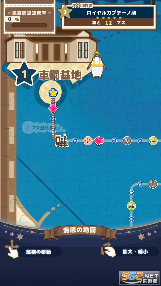 画面非常可爱的一款卡通冒险游戏,以企鹅等为主题,玩家在游戏中可以自由的探索冒险,通过投掷骰子的方式来让火车前进,解锁更多的场景和站点。