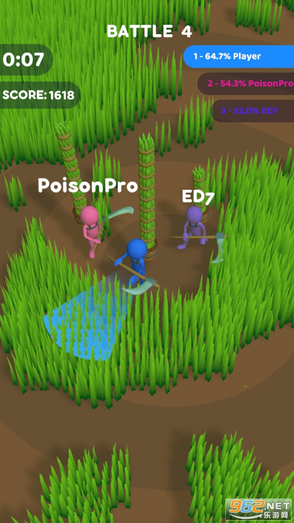 大家可以用割来的草去购买更好的装备,割草之后空出来的地就是你的,所以割草还能为你占领更多区域,成为割草达人努力割到更多的草,去击败所有的对手,相信你是可以的。