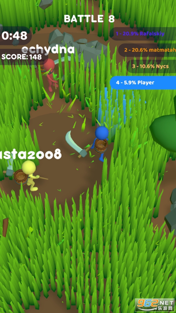 《割草大乱斗》是一款释放压力的割草乱斗游戏,在一望无际的草坪上疯狂割草,你有好几个竞争对手,必须快速挥舞手中的镰刀去割草,收集更多的草才能取胜,用镰刀割草还能发出非常治愈的声音,相信这款游戏能缓解大家的压力。