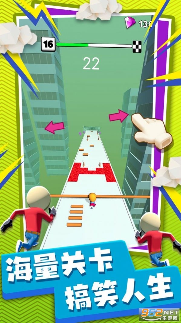 《火柴人极限冲刺游戏》是一款好玩的休闲闯关游戏,控制着你的火柴人在关卡中收集材料,使你手持的木棍变得更长,并且在游戏中体验那无比畅快的闯关冒险游戏挑战,赶快来下载加入我们吧!