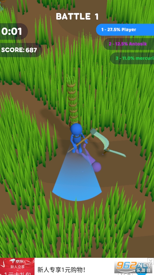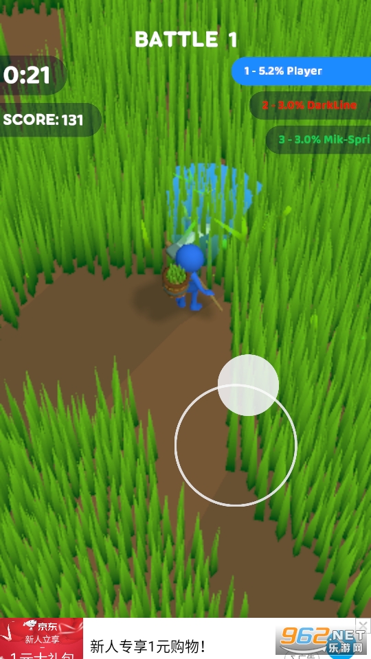 《割草大乱斗游戏》是一款超好玩的io竞技类的休闲游戏,简约清新的画面,玩家在游戏中一边除草一边和其他的玩家进行乱斗竞技比拼,操作方式简单,关卡也很丰富,移动控制角色方向,点击挥舞镰刀进行进攻。喜欢的话就快来下载吧!